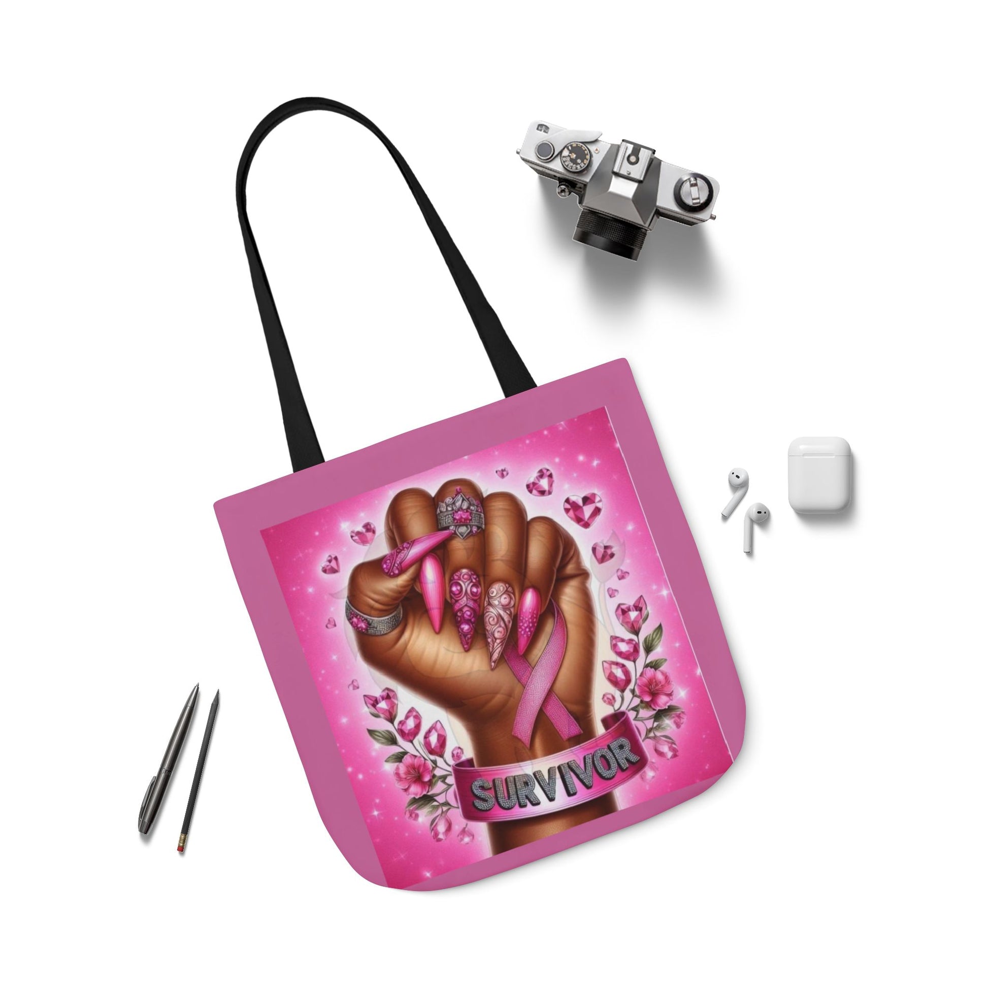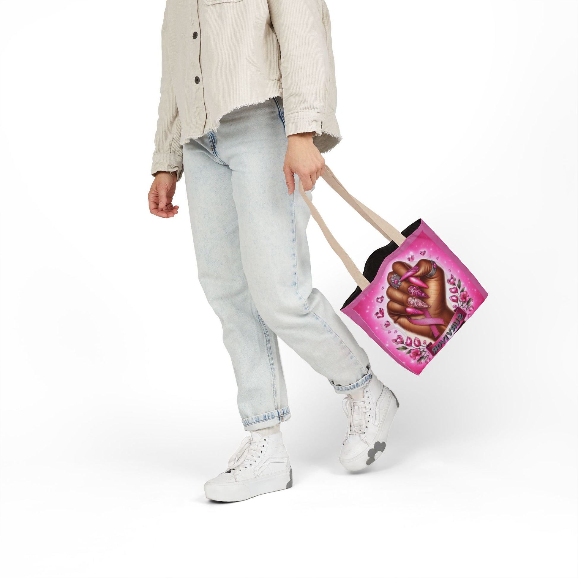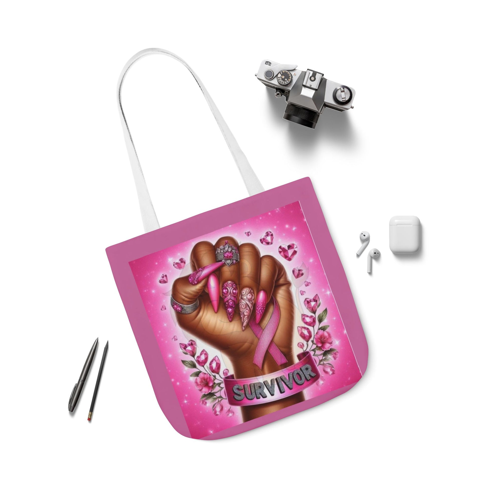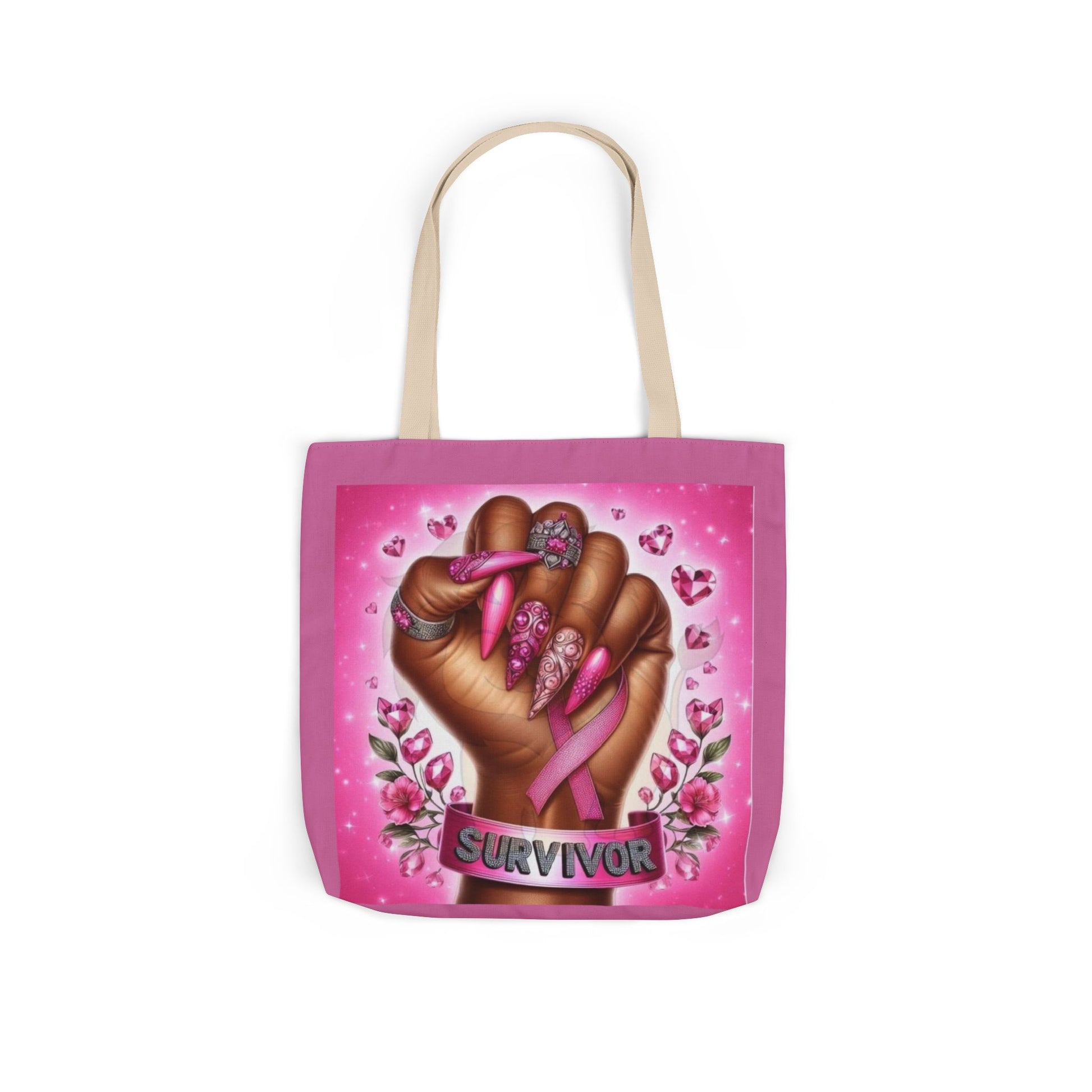 Breast Cancer Survivor Tote Bag Pink Ribbon Empowerment Canvas Tote