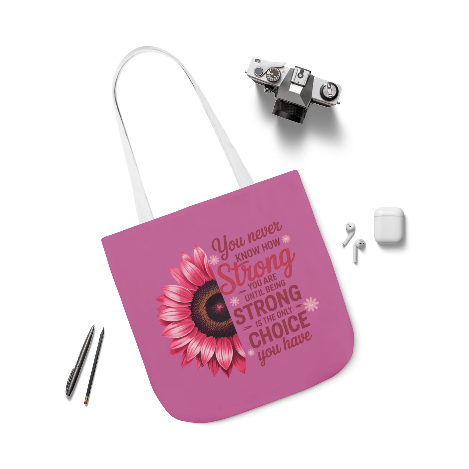 Cancer Survivor Hope Collection Inspirational Canvas Tote Bag with Floral Design