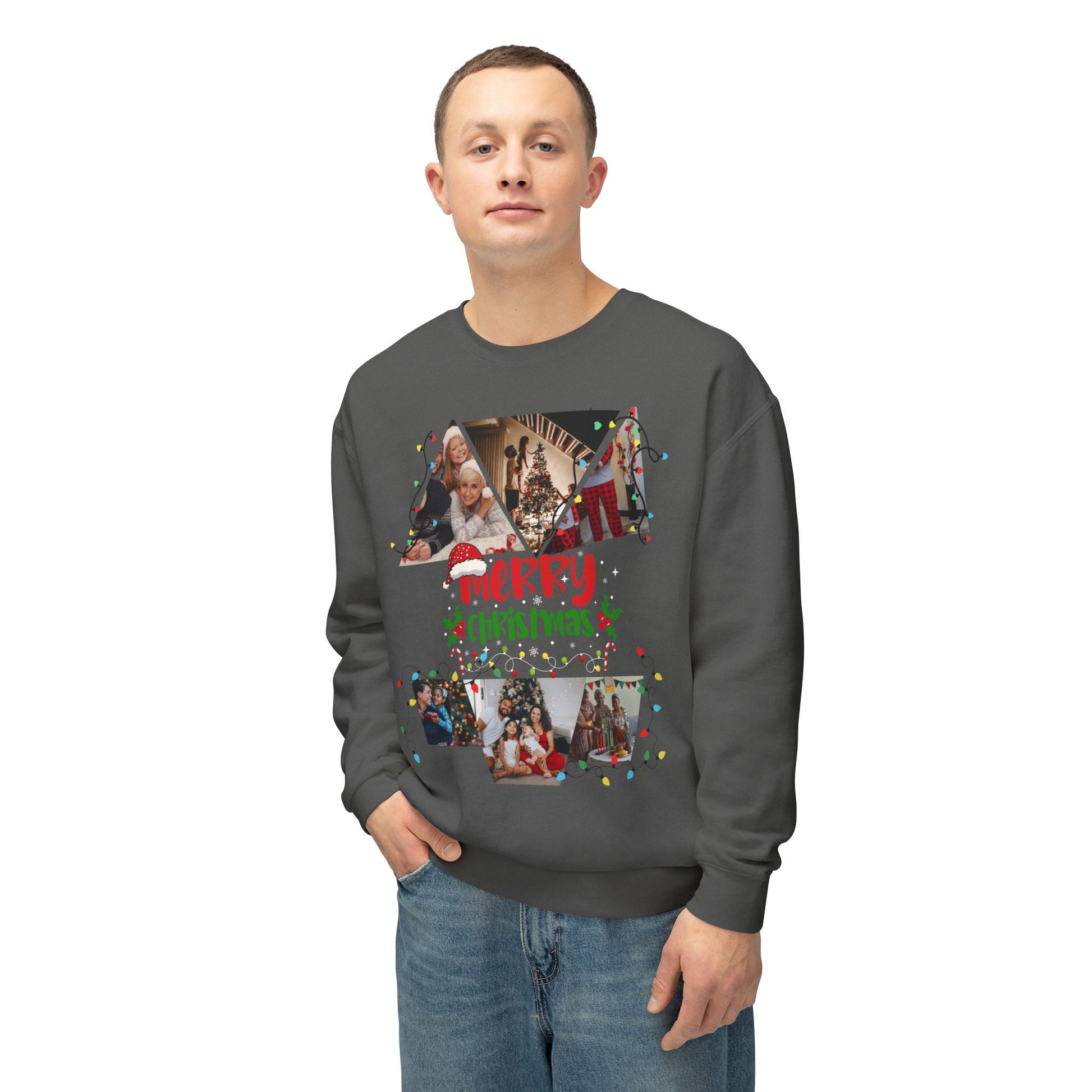Christmas Photo Collage Sweatshirt — "Merry Christmas" Holiday Crewneck