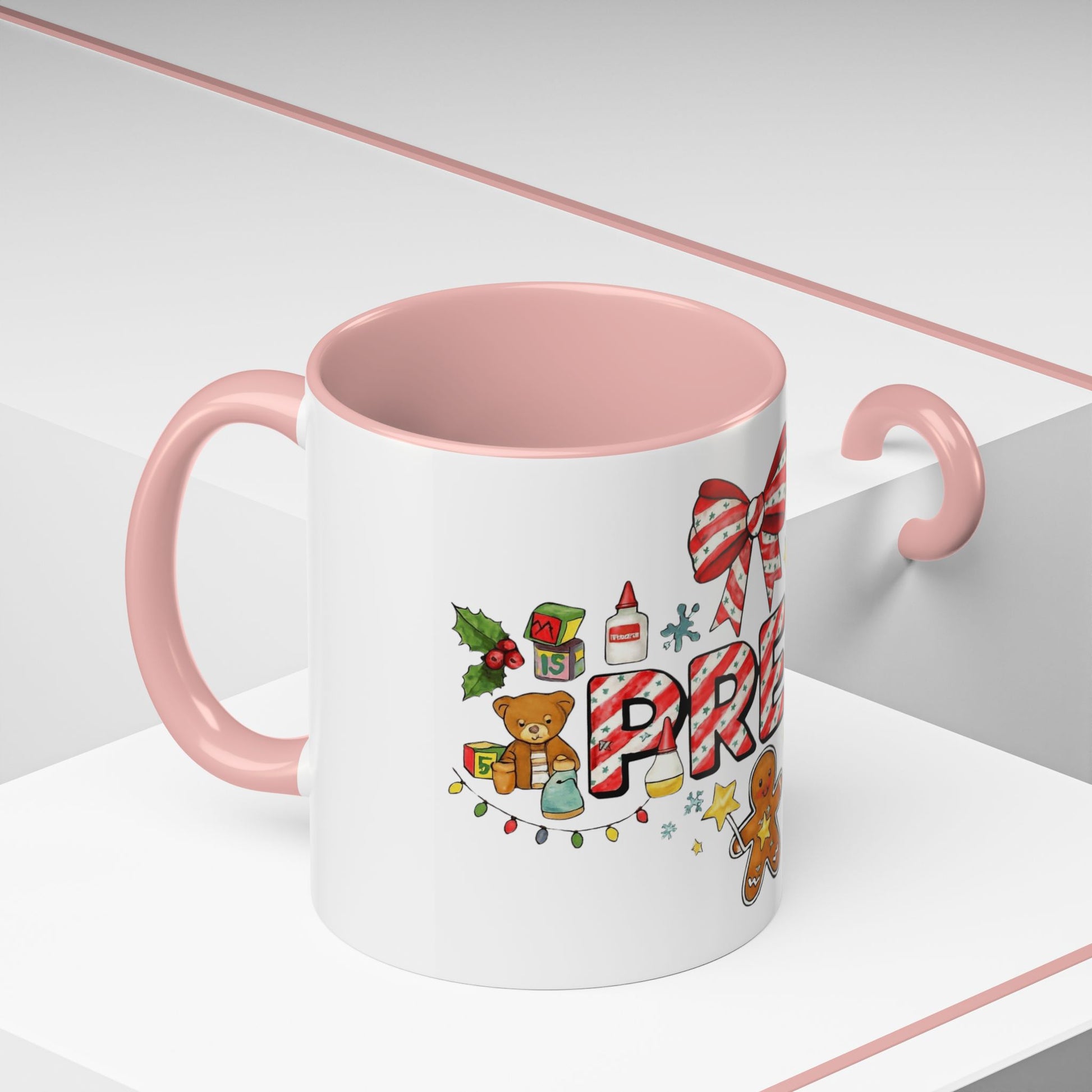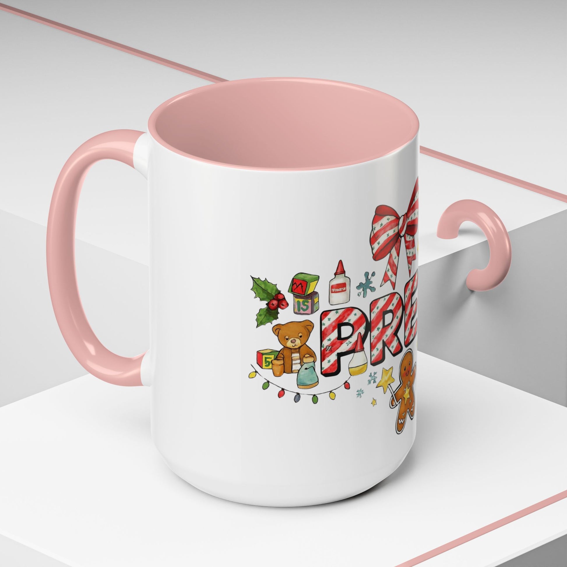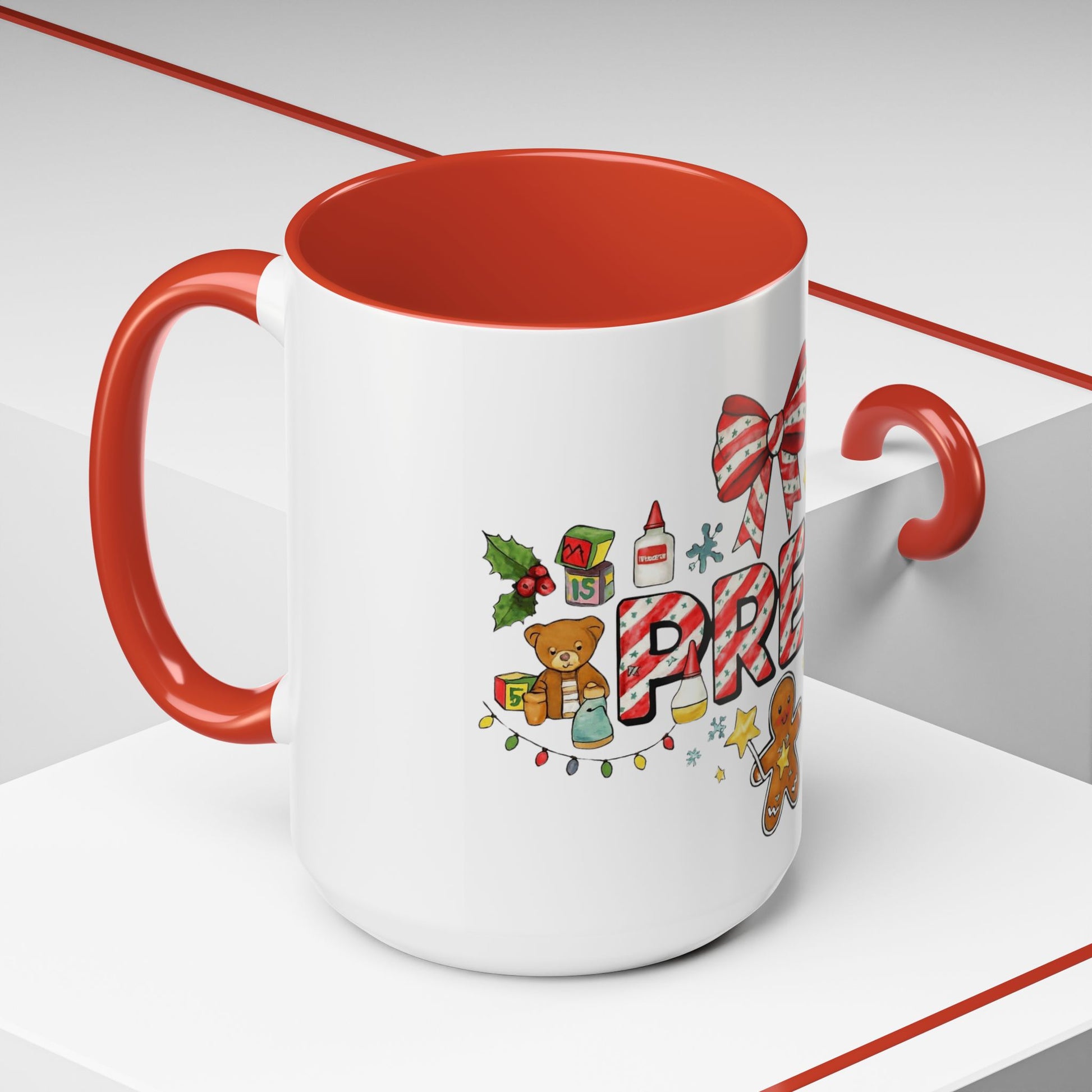 Holiday Teacher Coffee Mug 'PRE-K' Festive Gingerbread & Candy Cane Design (11/15oz) School Staff Christmas Mug Collection