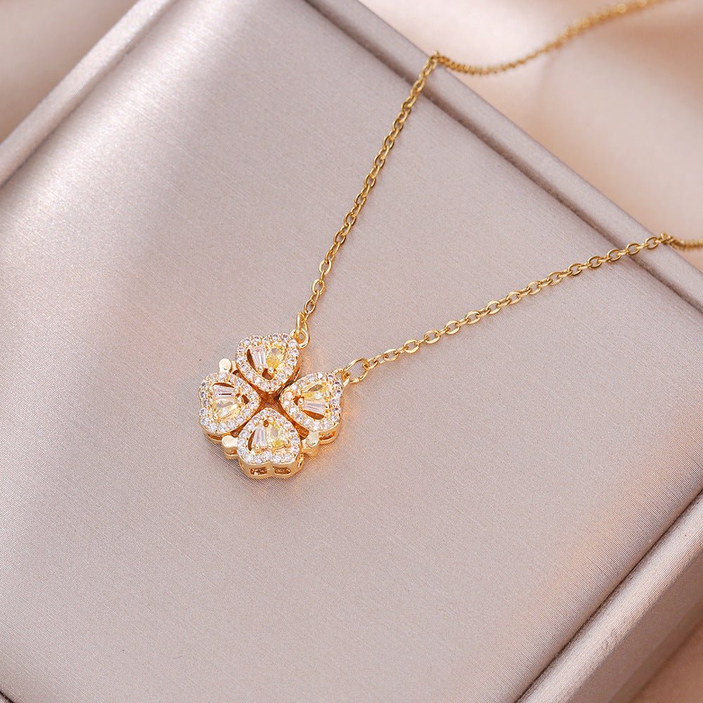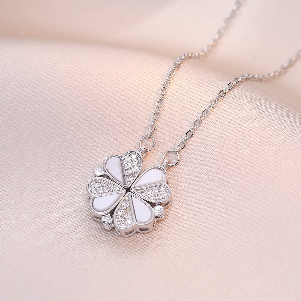 Open And Close Four-leaf Flower Dual-wear Heart-to-heart Necklace