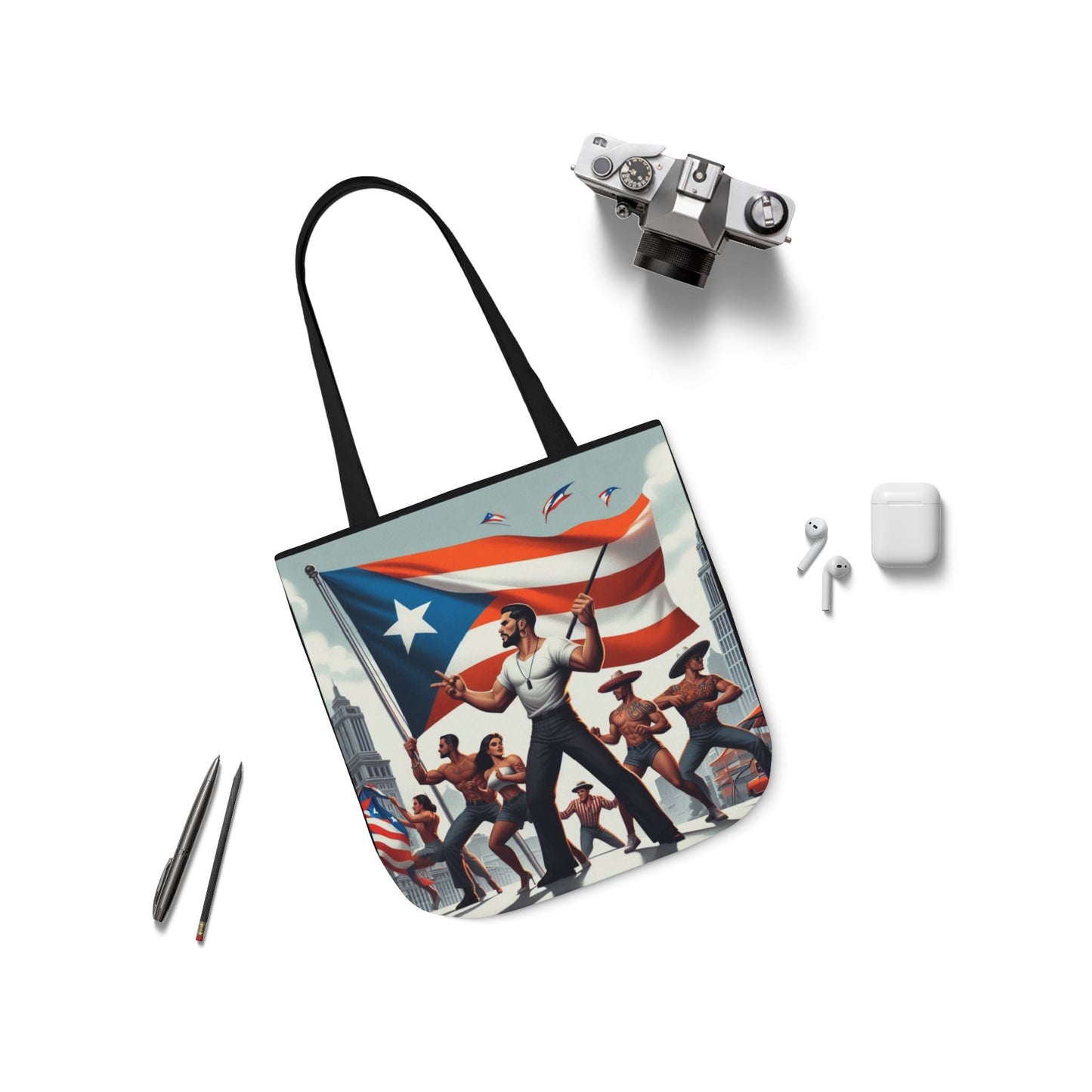 PUERTO RICO Canvas Tote Bag, 5-Color Straps