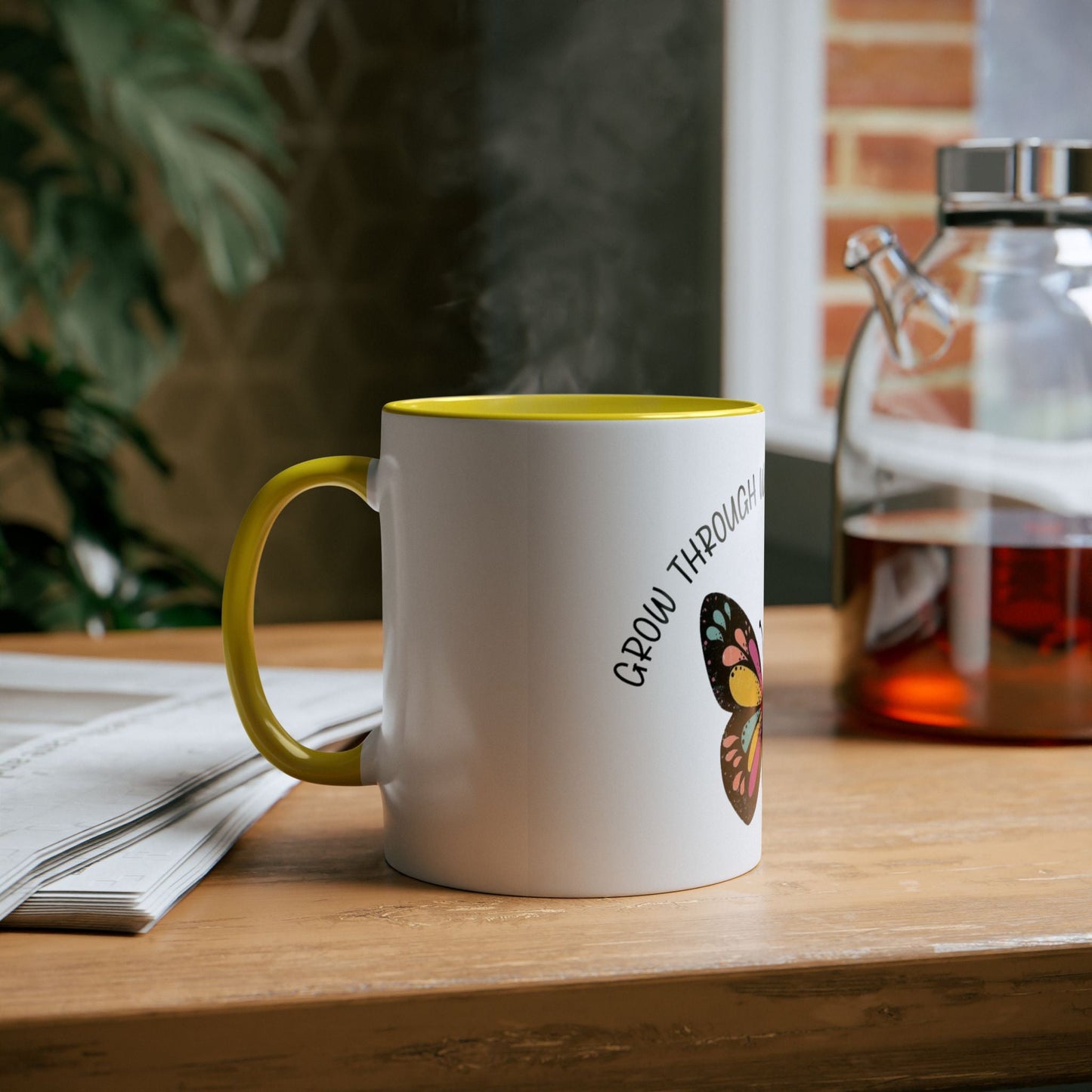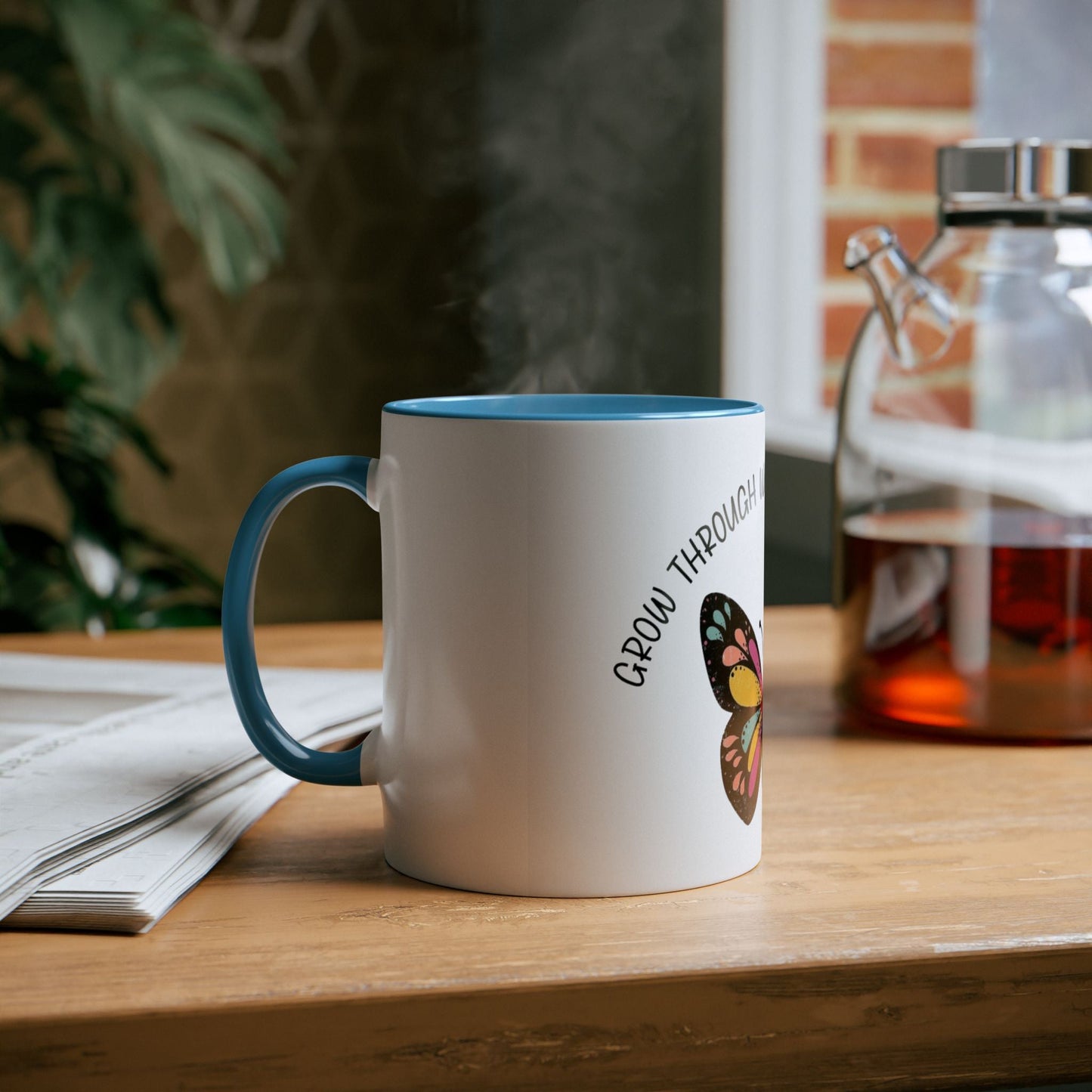 Start your day with meaning. Inspirational Two-Tone Mug for Growth Mindset, Butterfly Design, Coffee or Tea Lover Gift, Motivational Quote, Perfect for Self-Care