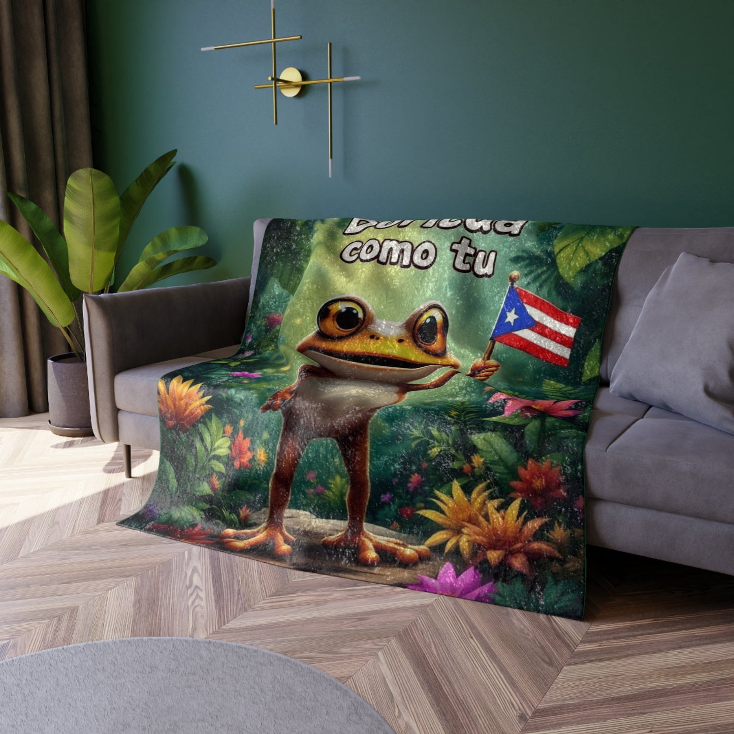Warmth from the Island – Boricua Crushed Velvet Blanket with Puerto Rican Flag, Taíno Symbols & Cultural Design (50"x60")